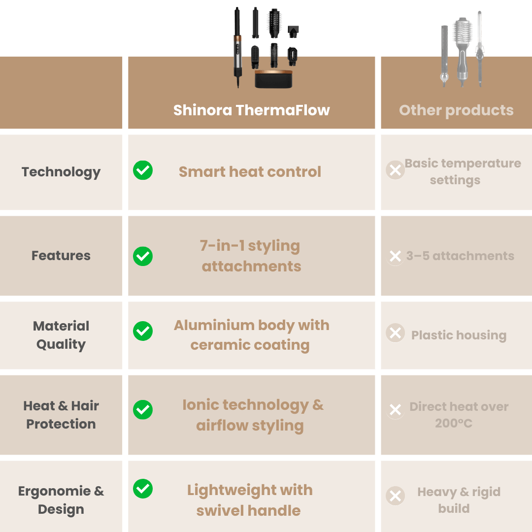 The ThermaFlow gives you more: multiple styles, healthier hair, and less stress. It’s a premium, all-in-one tool designed to make your daily routine easier – and more effective.