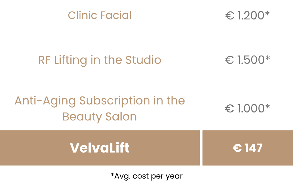 Vergiss Geräte, die versprechen und nicht liefern. VelvaLift verschafft dir nicht nur strahlendere Haut, sondern auch ein Gefühl von Kontrolle, Freude und Selbstvertrauen. Gönn dir die Qualität, die du verdienst - ganz bequem von zu Hause aus.