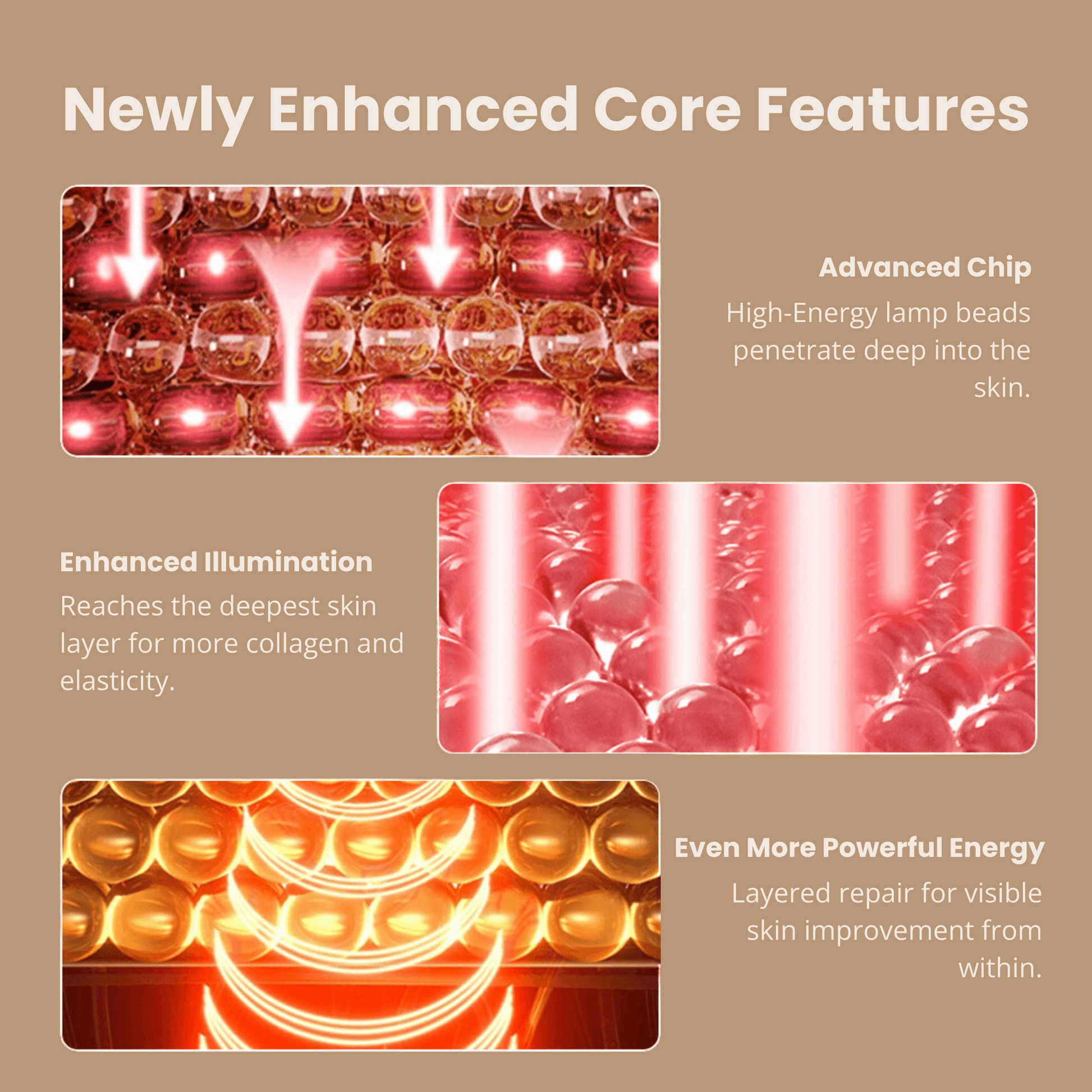 Lumière jaune (590nm) apaise les rougeurs et unifie le teint pour une peau lumineuse et éclatante. Fini les produits qui ne fonctionnent qu'à court terme.