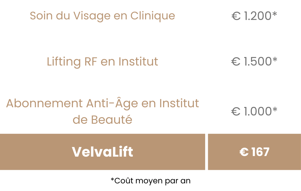Les machines en clinique sont plus puissantes, mais il faut prendre rendez-vous… et c’est souvent coûteux. VelvaLift s’inspire de ces technologies, pour des résultats visibles chez toi, à ton rythme.